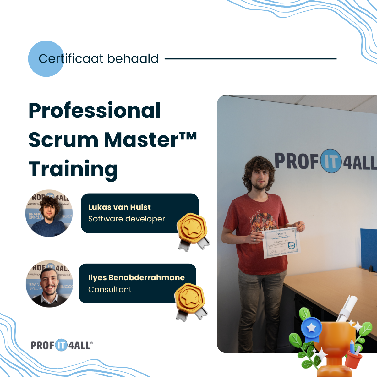Met trots delen wij mee dat Ilyes en Lukas onlangs de cursus Professional Scrum Master succesvol hebben afgerond en hiervoor hun certificaat hebben ontvangen.